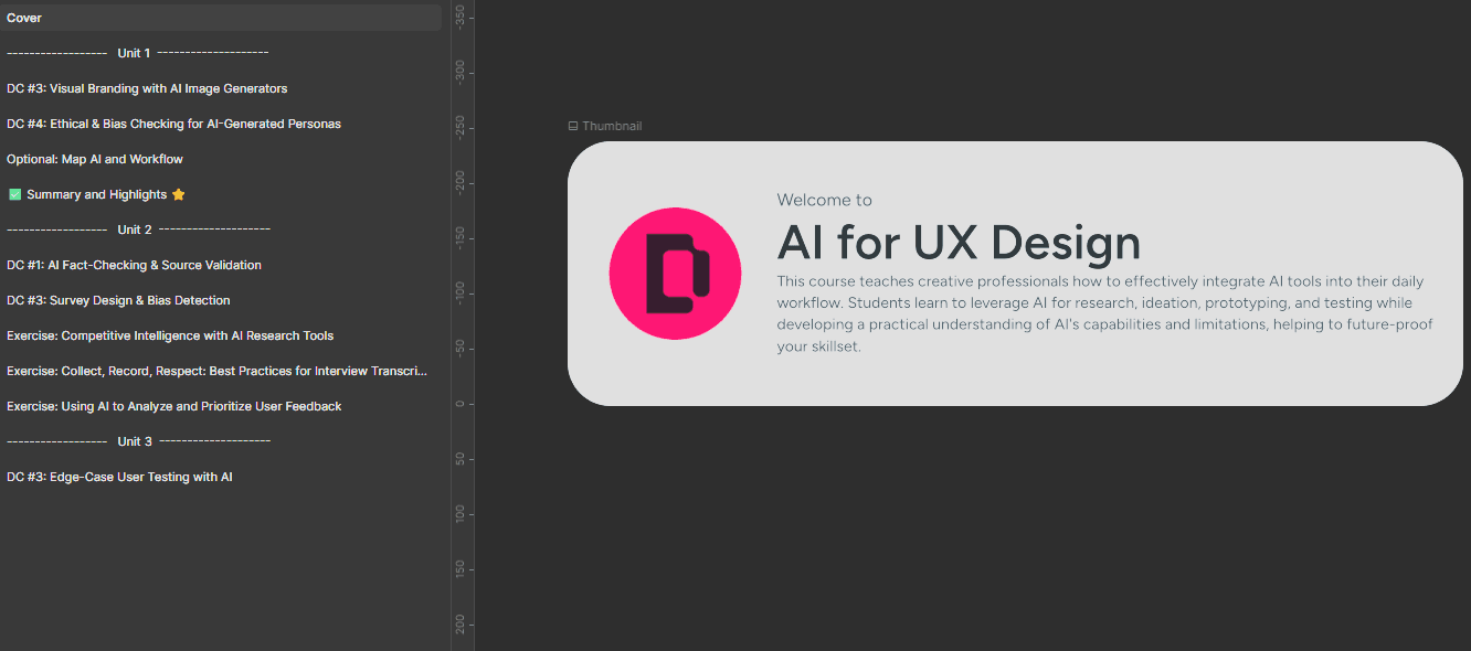 In late 2025, I completed a Designlab course focused on AI in design. Over four intensive weeks (40+ hours), we explored AI bias, persona creation, prompt refinement, fact-checking, and (most importantly) how to integrate these tools meaningfully into the daily UX workflow.