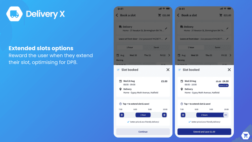 To address this, we introduced live activity tracking to keep users informed in real time, and began exploring a gamified experience that allows users to extend their slot window voluntarily (currently work in progress). This helped shift longer delivery windows from a compromise into a conscious, empowered choice.